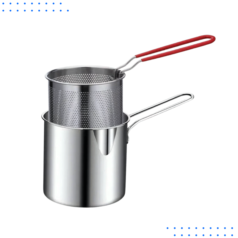 This compact stainless steel fryer pot makes deep-frying easy and clean at home. Featuring a detachable filter basket and heat-resistant handle, it’s perfect for cooking fries, nuggets, pasta, or vegetables on your stovetop.